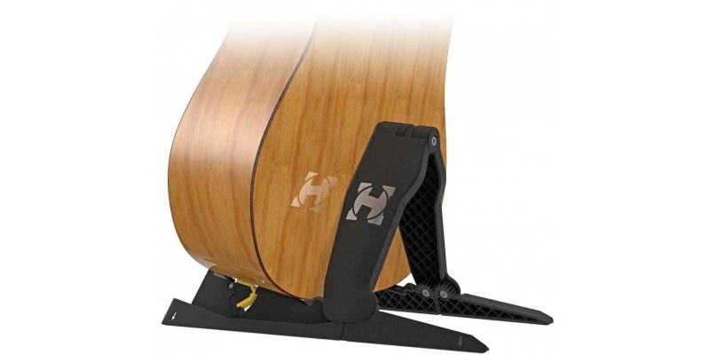 The problem with a lot of portable stands is that they can be a bit flimsy. This is certainly not the case when it comes to the Hercules GS200B EZpack. It has a tough plastic construction with rubber contact points. Thanks to a wee bit of ingenious design it will happily take electric guitar and bass as well as acoustic. There are two little spring clips that move into place when using a slimmer bodied instrument. Folding and unfolding the GS200 is simple too. When unpacked there are rests that fold out the back of it. This adds to the stability. The Hercules EZpack folds up super flat too. It is small enough to get into a good sized gig bag pocket. This makes it ideal for portability. All at a very good price.