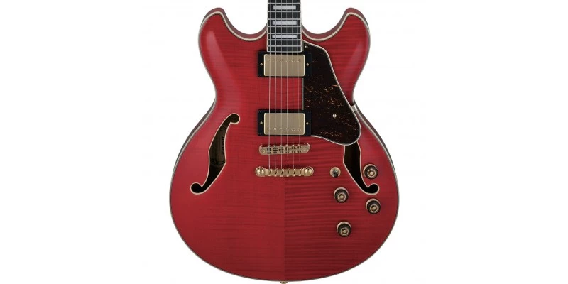 The Ibanez AS93FM is part of Ibanez’s Artcore Expressionist range of hollow-body electric guitars. The Artcore Expressionist series features upgrades over the standard Artcore series including Super 58 pickups, ebony fretboard, gold hardware, Expressionist three-piece neck and tortoiseshell pickguard. These substantial upgrades combine to make this outstanding semi-acoustic guitar even better. The AS93FM is finished in a Transparent Cherry Red gloss which perfectly showcases its flamed maple top.