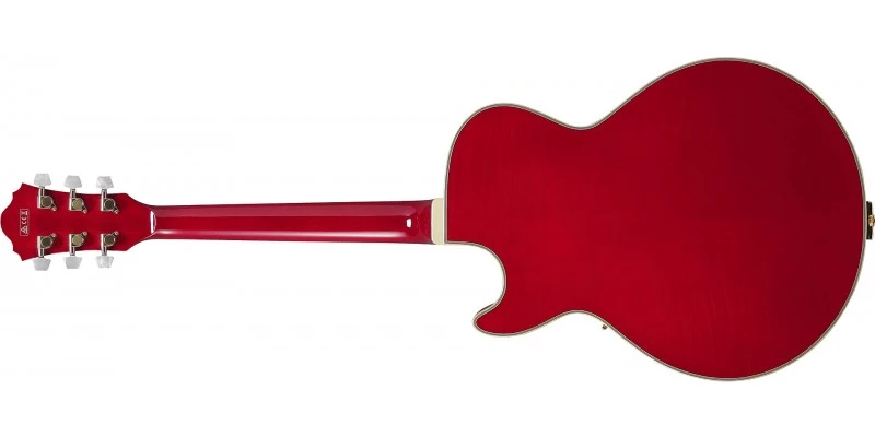 The Sapphire Red Ibanez GB10SEFM features a hollow flamed maple body