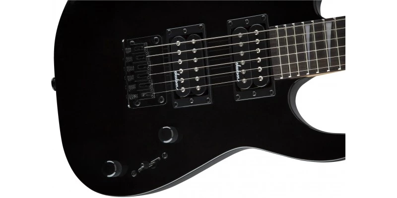 Other features include a rear-angled headstock for evenly distributed tension (reducing playing fatigue), sculpted heel for easy upper register playing, dual Jackson high-output humbucking pickups with three-way blade switching, a string-through-body hardtail bridge and black hardware.