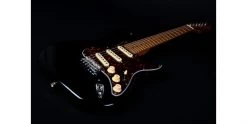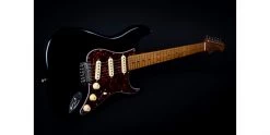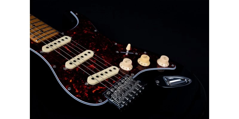 With a phenomenal spec sheet and build quality for the price, the Jet JS-300 S-Style electric guitar is here presented in Black with Roasted Maple Fretboard. Jet guitars are inspired by classic high end guitars, and they really do look and feel much more expensive than they in fact are! The JS-300 is fitted with three ceramic magnet single-coil pickups, resulting in an appropriate Stratty twang. The tremolo enables the whammy bar action to match, while the bone nut and Roasted Maple fretboard are usually unseen at this price.