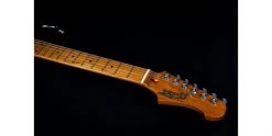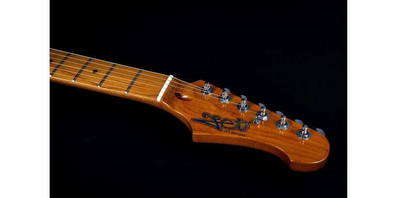 With a lightweight and resonant Basswood body, combined with a Roasted Canadian Maple neck / fretboard, the Jet JS-300 gets off to a very good start. This guitar really has looks to die for, with a rich gloss finish showing off the Black body and Roasted neck to full effect. Aged plastic knobs and pickup covers give it a vintage look which complements the caramel hue of the neck and multi-ply tortoiseshell pickguard.