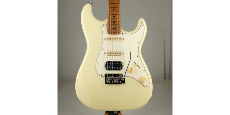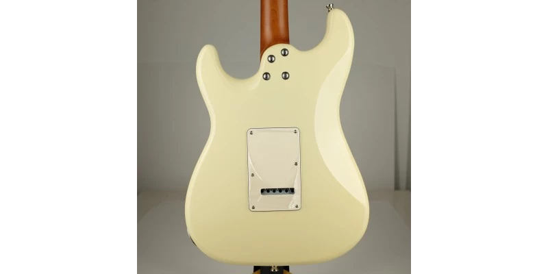 With a phenomenal spec sheet and build quality for the price, the Jet JS-400 S-Style electric guitar is here presented in Vintage Yellow with Roasted Maple Fretboard. Jet guitars are inspired by classic high end guitars, and they really do look and feel much more expensive than they in fact are! The JS-400 is fitted with three ceramic magnet pickups in HSS configuration, resulting a hugely versatile range of tones. The bone nut and Roasted Maple fretboard are usually unseen at this price, as are the upgraded 2-point trem system and sculpted plate-less neck heel.