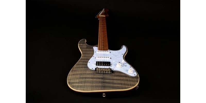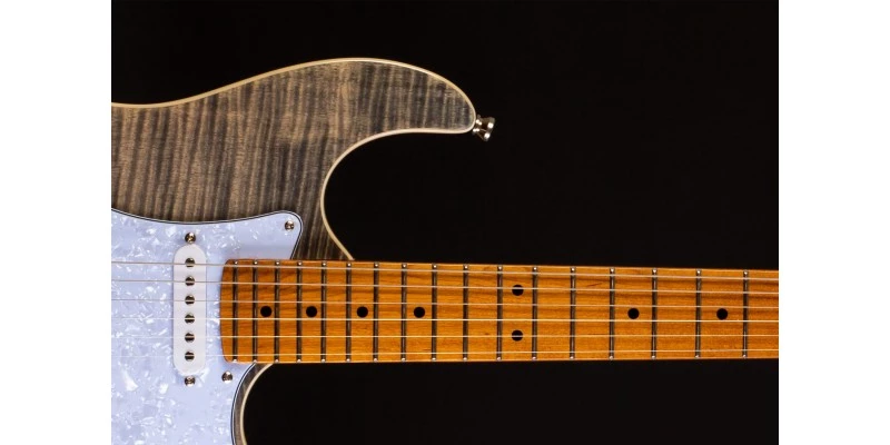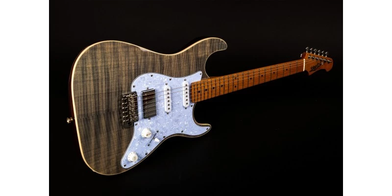 Jet Guitars JS-450 Electric Guitar in Transparent Black with Roasted Maple fretboard and Flamed Maple Top