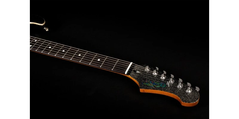 Jet Guitars JS-500 Electric Guitar in Black Sparkle with Roasted Maple neck and Body-matching headstock
