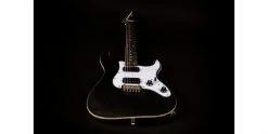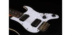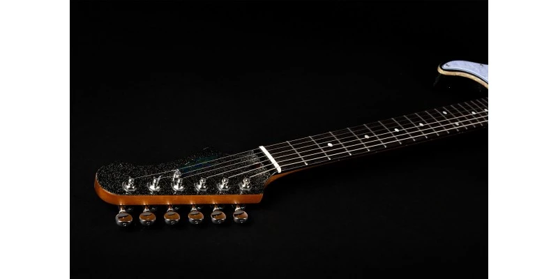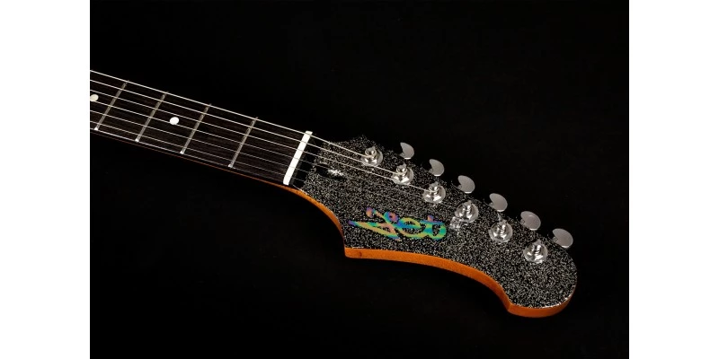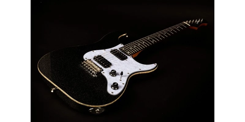 Fitting into the “Super Strat” mould at a phenomenal price point, the Jet JS-500 is here presented in Black Sparkle with body-matching headstock. This guitar comes with a 24-fret mixed ebony fretboard, satin-finished roasted maple neck, locking tuners, and two Korean-made Alnico humbucking pickups. As with all Jet guitars, the JS-500 plays, feels and sounds like a much more expensive instrument, additionally coming with an upgraded with a 2-Point Wilkinson Tremolo system, Pearloid Pickguard and Pearloid body binding.