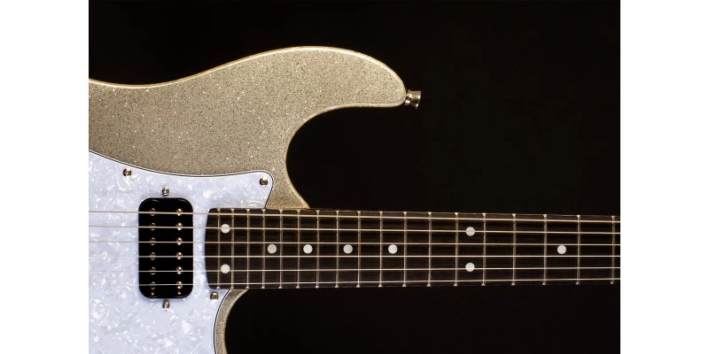 With a lightweight and resonant Basswood body combined with a Roasted Canadian Maple neck, the Jet JS-500 gets off to a very good start. This guitar really has looks to die for, with a rich gloss Silver Sparkle finish and body-matching headstock. Black knobs and pickup covers are offset by the Pearloid pickguard for a premium look which complements the caramel hue of the neck and black mixed Ebony fretboard.