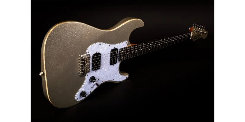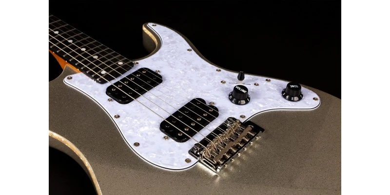 Fitting into the “Super Strat” mould at a phenomenal price point, the Jet JS-500 is here presented in Silver Sparkle with body-matching headstock. This guitar comes with a 24-fret mixed ebony fretboard, satin-finished roasted maple neck, locking tuners, and two Korean-made Alnico humbucking pickups. As with all Jet guitars, the JS-500 plays, feels and sounds like a much more expensive instrument, additionally coming with an upgraded with a 2-Point Wilkinson Tremolo system, Pearloid Pickguard and Pearloid body binding.