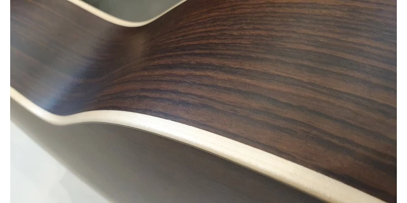 Sitka Spruce combined with Indian Rosewood is, for some, the ultimate tone wood pairing. Its complex sound is produced by the attack of the Sitka and the overtone-rich resonance of the Rosewood. Larrivee’s “Scalloped Parabolic Hybrid” bracing design brings the best of this already-outstanding combination. A non-symmetrical scalloped lateral cross-bracing pattern has been blended with Larrivee’s tried and true balanced X-Brace system. The result is maximum strength using the least amount of material. It’s a build that allows even further vibration of the soundboard, while still offering a controlled dynamic bass response.