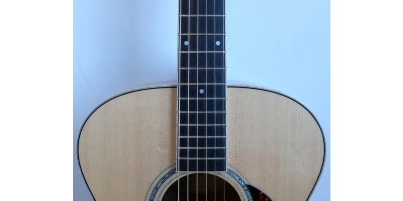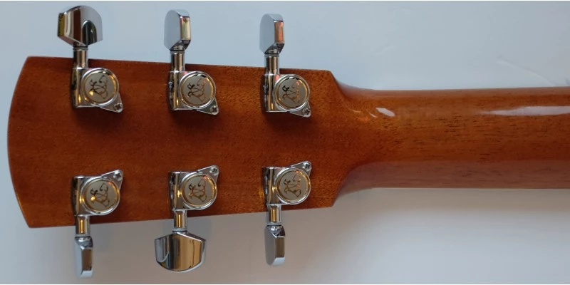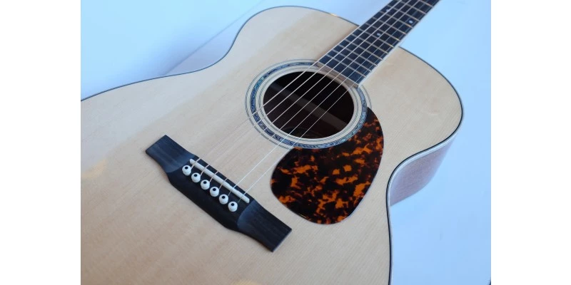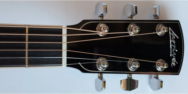 The OM-05 features subtle upgrades which benefit both the guitar’s tone and aesthetics. The gloss finish is beautifully applied, exhibiting the premium wood grains to their best effect. The headplate is adorned with a silver border which contrasts beautifully with the ebony headplate wood. Ebony also features on the bridge and fretboard, while the nut, saddle and bridge pins are constructed from bone for optimal resonance and sustain. The elegant luxury of the abalone rosette is combined with Larrivee’s signature tortoiseshell pickguard, effectively melding tradition and modernity. Premium “JCL” 18:1 tuners provide the final finishing touch, being both silky smooth and highly accurate.