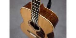 The OM-09 features subtle upgrades which benefit both the guitar’s tone and aesthetics. The gloss finish is beautifully applied, exhibiting the premium wood grains to their best effect. The headplate is adorned with a silver border which contrasts beautifully with the ebony headplate wood. Ebony also features on the bridge and fretboard, while the nut, saddle and bridge pins are constructed from bone for optimal resonance and sustain. The elegant luxury of the abalone rosette is combined with Larrivee’s signature tortoiseshell pickguard, effectively melding tradition and modernity. Premium “JCL” 18:1 tuners provide the final finishing touch, being both silky smooth and highly accurate.