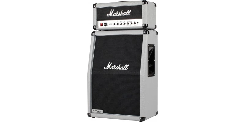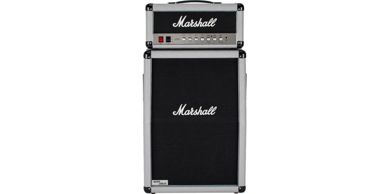 This amp package includes the Marshall 2525H Mini Jubilee Head and 2536A 2×12 Vintage 30 Cabinet.