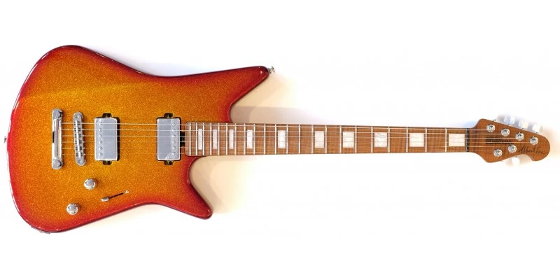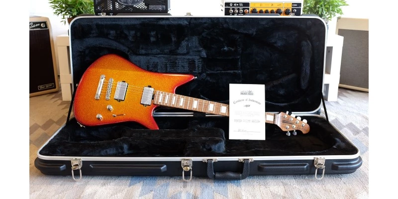 Just arrived in to stock is this very special Music Man BFR Albert Lee HH in a stunning sparkle Cherry Punch finish with Tune-o-matic bridge. Number 6 of only 75 made, this stunning guitar boasts a Flamed Roasted Maple Neck, bolted to a lightweight and highly resonant Okoume body. The unique finish has been applied with an attention to detail befitting the revered Ball Family Reserve name, while push-push active electronics further set it apart from standard models.