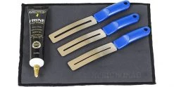 3 GRIP Fretboard Guards Innovative Handle keeps your hands from getting in the way and engineered curved angle contours to all fretboards. 1 each for all Small, Medium, Jumbo Fret Slot Sizes.
