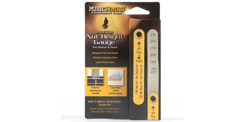 The Precision Nut Height Gauge includes the 3 Most Common Nut Height Measurements (.016″, .018″, .020″) for Electric, Acoustic, Classical & Bass Guitars. Plus 3 additional sizes (.012”, .014”, .022”) to accommodate a desire for lower action or a heavier pick attack. Made to the same high standards as all MusicNomad products.