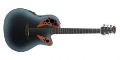 The Ovation Celebrity Elite Electro-Acoustic Guitar is here presented in a Reverse Blue Burst finish with Solid Spruce top. This CE44-RBB model features Ovation’s Mid Depth Lyrachord roundback body, which provides a resonant and consistent foundation for the Spruce. Ovation’s OP-4CT preamp and CP-100 pickup transform this guitar into an outstanding stage instrument.