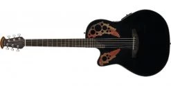 The Left Handed Ovation Celebrity Collection Elite is a performance ready guitar offering striking aesthetics and pristine live sound. Ovation’s unique multi-soundhole design provides clear highs and a focused, balanced bass response. The solid Sitka spruce top has laser-cut epaulets that set it apart from the rest, and provide remarkable note for note clarity. It features a classic Ovation high gloss, black lacquer finish.