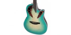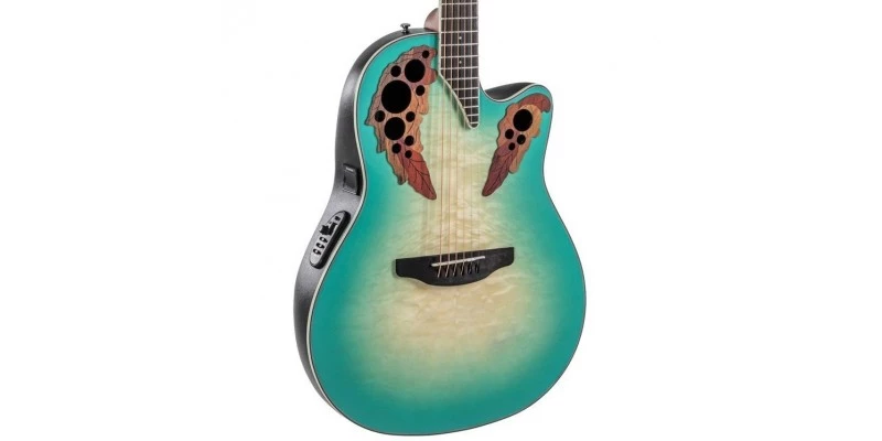 The Ovation Celebrity Collection Elite Plus is a performance ready guitar offering striking aesthetics and pristine live sound. Ovation’s unique multi-soundhole design provides clear highs and a focused, balanced bass response. The Quilted Maple top has laser-cut epaulets that set it apart from the rest, and provide remarkable note for note clarity. It features a unique gloss Mintburst finish.