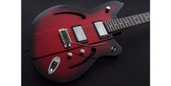 The latest product of Reverend’s constant drive for innovation, the Airsonic W Metallic Red Burst blends the sustain of a solid body with the rich tone of a semi-acoustic. The Airsonic W tremolo model features a thick, solid korina centre ridge, combined with ultra-thin wings with through-body f-holes, to produce that elusive combination of both solid body and semi acoustic qualities. Now available from Merchant City Music, online and in our Glasgow store. We pride ourselves in our peerless customer service, and ship fast to the UK and Europe.