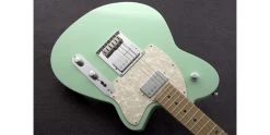 The Reverend Crosscut is here presented in an Oceanside Green finish with Roasted Maple neck and Fretboard. Building on the foundation of the Charger, the Crosscut is the first Reverend model to feature a matching set of Railhammer Cleancut pickups. Offering P90-style punch, but with more chime and less mids – all with zero hum – these pickups are revolutionary. A strings-through-body 6-saddle bridge provides all the vintage, twangy sounds you’ve been craving!