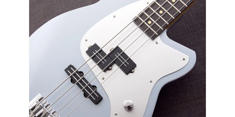 Reverend’s Boneite nut reduces friction whilst still transferring the tone of the strings through the bass. It’s more durable than graphite whilst having a more traditional tone and appearance. The High Mass Bridge can be strung through body or top loaded. Hipshot Ultralight tuners made of aircraft grade aluminium make them extra-light. The difference in weight can be as much as 2-3oz less in the headstock, which means a more balanced bass that’s more comfortable to play. And the tone is great! The bass is more defined and enhanced with the Hipshot Ultralites.