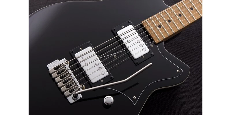 Thanks to a 26 and three quarter inch scale length this baritone plays like a guitar rather than a bass. The Reverend Descent W Baritone features Reverend’s outstanding roasted maple neck with satin finish. Roasting the maple provides increased stability and resonance for a better-sounding and more usable guitar. It also feels amazing, encouraging you to keep playing long after you would have put another guitar down. A Roasted Maple fretboard with 12 inch radius and a custom SIT 12-68 gauge string set with plain 3rd string means you’ll be able to bend strings with ease.