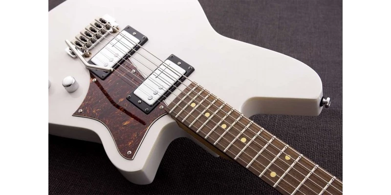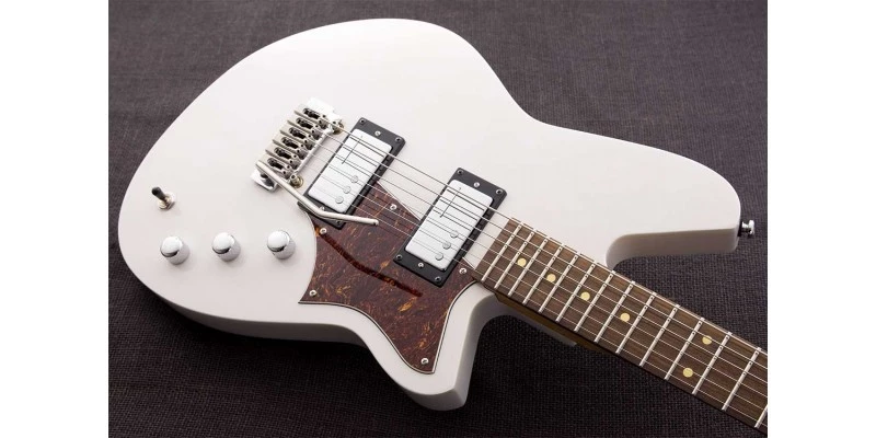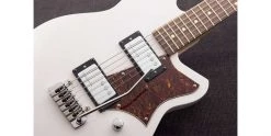 The korina body is well balanced both acoustically and in terms of weight. It features flawlessly finished Transparent White paintwork. The hardware on this Reverend Descent W Baritone puts it in the professional league. A set of Railhammer Humcutter pickups deliver P90 tones without the hum. They can be tweaked using the volume and tone controls. You also get an extra control called a Bass Contour. This lets you dial in or out a certain frequency of bass depending on how you use it. A quality Wilkinson tremolo unit and a set of locking machine heads helps keep the tuning stable.