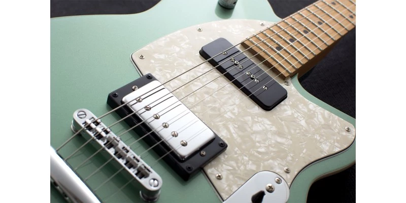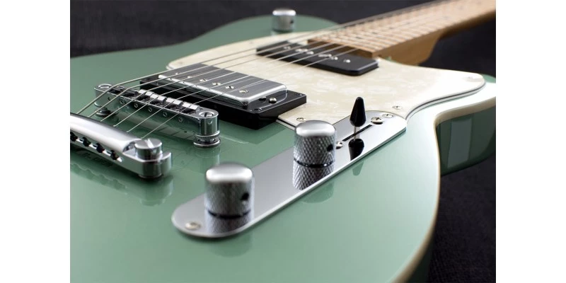 The Reverend Double Agent OG Trans Black features a gorgeous roasted Maple neck. Roasted Maple has many benefits over an unroasted Maple neck. The Maple is heat treated at temperatures over 300 degrees Fahrenheit to remove sugars, moisture, and other impurities. This not only give the Maple a beautiful rich caramel colour and allows the grain to really pop, but also makes it far more stable thanks to the lower moisture content. That means your neck can handle different environments better without requiring adjustment. The roasting process also makes the neck lighter and more resonant which you can really feel as you play. The neck almost feels ‘alive’ in your hands. Fitted to the 12″ fingerboard – also made from Roasted Maple – are 22 medium jumbo frets. Reverend’s fret work is second to none in this price range. They are highly polished and perfectly level meaning you can get the action nice and low without any issues. A real joy to play on!
