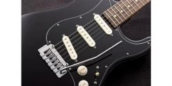 The Reverend Gil Parris Signature GPS – here presented in Midnight Black with Roasted Maple neck and Rosewood fretboard – is the latest fruit in the collaboration between Reverend Guitars and multi-genre genius, Gil Parris. More obviously Strat-style than the previous Gil Parris Signature model, this guitar is nevertheless packed with Reverend innovation. It also now comes loaded with a set of Fishman Fluence Single-Width pickups. Controlled via a push/pull switch, these pups shape-shift between authentic vintage sweetness and clarity, while simultaneously allowing full-fat “Hot Texas” punch.