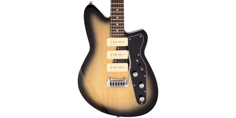 The Reverend Jetstream 390 Korina Burst looks amazing. For us it’s one of the stand out models in the Reverend Bolt-On Series. The new Korina Burst finish with black pickguard just oozes cool! Reverend are using three of their own new alnico magnet P90 pickups in the Jetstream 390. The bridge pickup is slightly hotter than a vintage P90 offing raw, classic tone with less hum than most other P90’s. The middle and neck pickups are cleaner than vintage P90’s. They give you a clear, open tone and less hum. The middle pickup is Reverse Wind Reverse Polarity for hum-cancelling when used with bridge or neck pickups. Positions 2 and 4 on the pickup selector deliver classic “quack” but with a thicker tonality. An amazing guitar for both clean and distorted tones with enough twang for surf, but thick enough for rock.