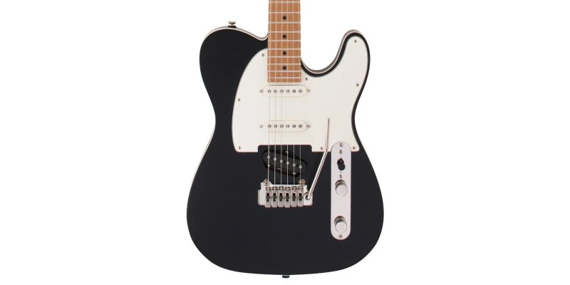 So, this might look like an ordinary solid body electric guitar but don’t be fooled! The Reverend Pete Anderson Eastsider S in Satin Black features a chambered korina body. Korina is a very acoustically resonant wood. Usually found on boutique instruments. To find it on a guitar of this price is fantastic. Bolted on to the body is a stunning roasted Maple neck. This features a roasted Maple fretboard with a compound radius. Ranging from ten to fourteen inches it offers comfort at the bottom and low action at the top. Again, another surprising feature for such a keenly priced instrument.