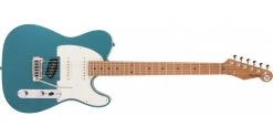 So, this might look like an ordinary solid body electric guitar but don’t be fooled! The Reverend Pete Anderson Eastsider S in Satin Deep Sea Blue features a chambered korina body. Korina is a very acoustically resonant wood. Usually found on boutique instruments. To find it on a guitar of this price is fantastic. Bolted on to the body is a stunning roasted Maple neck. This features a roasted Maple fretboard with a compound radius. Ranging from ten to fourteen inches it offers comfort at the bottom and low action at the top. Again, another surprising feature for such a keenly priced instrument.
