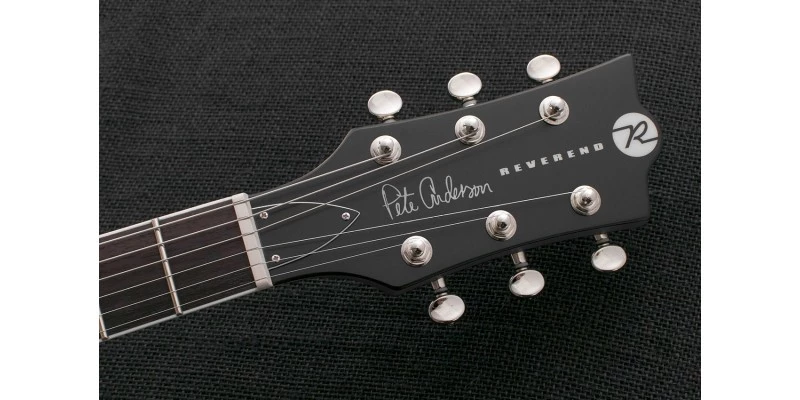 The Reverend Pete Anderson PA1 Satin Black comes in its own shaped Reverend hard case.