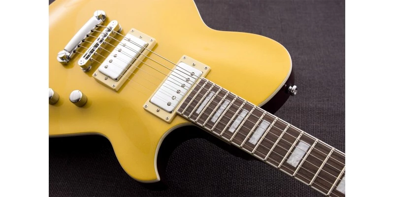The Roundhouse in Venetian Gold comes with a 12” radius Rosewood fretboard, resulting in a modern feel. The 22 medium jumbo frets are beautifully finished, allowing the action to go nice and low without buzz.
