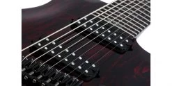 The Schecter C-8 Multiscale Silver Mountain is here presented in a Blood Moon finish with Ebony fretboard. Packing twin Schecter USA Sonic Seducer pickups, this guitar produces powerful modern humbucker tones. A Hipshot Hardtail bridge provides outstanding stability and resonance transfer, while the 24 X-Jumbo Stainless Steel frets will stand up to years of abuse.