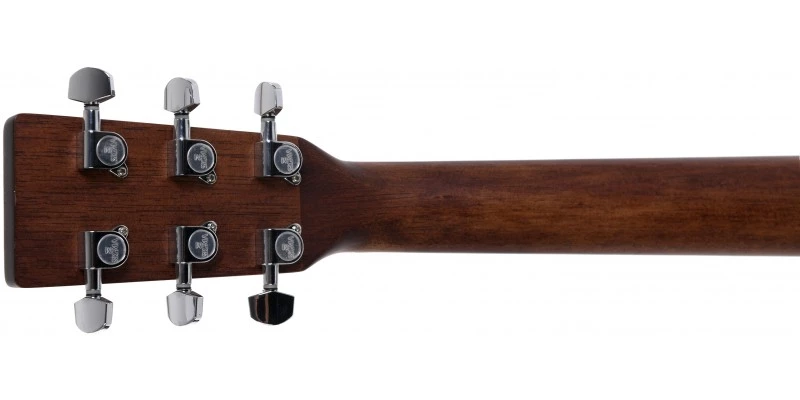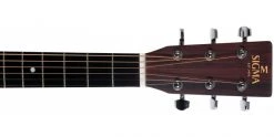 The satin finish Mahogany neck joins the body at the 14th fret and has a slim comfortable profile. The overall fit and finish from Sigma continues to amaze us. This is a top quality guitar which plays, sounds and looks great. Features such as a traditional bone nut and saddle is what you would expect to find on a guitar costing several times more. If you are looking for a comfortable acoustic guitar with the addition of a good quality pickup then you’d be hard pushed to get a better guitar for the money.