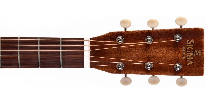 The tonal output of the DM-15E is rich and characterful, with plentiful projection thanks to the bigger dreadnought body. Sigma have fitted a bone nut and saddle, which helps transfer every ounce of tone from the strings into the solid Mahogany top. The result is a lively and overtone-rich response.