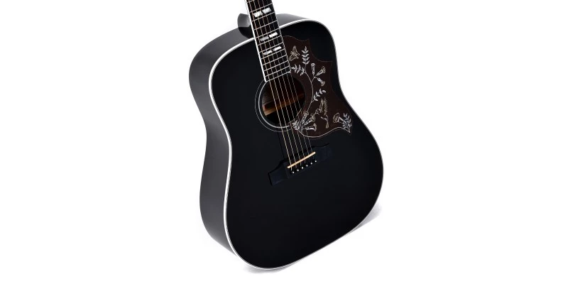 Finished in Black, the Sigma DM-SG5 delivers classic looks reminiscent of the Gibson Hummingbird. It is actually a modern recreation of an acoustic guitar Sigma made in the 1970s. As with all Sigma guitars the quality of build and finish is second to none at the price point. The DM-SG5-BK features a solid Sitka Spruce top with Mahogany back and sides.