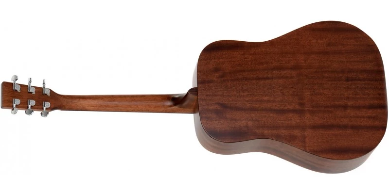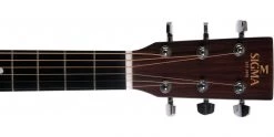 The Sigma DM-ST is a no-nonsense guitar, with the right features where it counts. Solid Sitka spruce for the soundboard is a key feature for the instrument’s long term sound quality, while all vibrations from the strings are transferred directly onto the top via the bone nut and saddle. Micarta is used for the bridge and fretboard, being both hard and stable. Stable tuning is provided by the maintenance-free closed-back tuners.