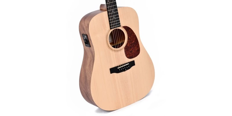 The Sigma DM7E is a full body dreadnought acoustic guitar with a trick up its sleeve! An additional paired G String – tuned an octave up from the normal G string – adds a beautiful shimmer without the need to go for a full 12-string guitar. It’s much easier on the fingers too! It features a solid Sitka Spruce top paired with Mahogany back and sides. What’s more, the DM7E is fitted with a bone nut and saddle. This gives this guitar a superb acoustic tone that will quite easily shame bigger brands costing several times as much. It’s bright and airy with plenty of body and detail. The Sigma DM7E doesn’t just stop there. Fitted to the side of the body is an active Sigma preamp with volume, bass, middle and treble controls along with a chromatic guitar tuner.