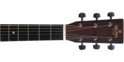 Despite the stripped back, simple aesthetic of this acoustic it really punches above its weight. That’s because the money has been spent of making the Sigma OMM-ST not only play well but sound great too. These are the two most important aspects of a guitar. Some instruments at a similar price point, perhaps even more, will feature a laminated top. They might look good but they probably will not not sound half as good as this little OOO body guitar. This is thanks partly to it solid spruce top construction. The OMM1ST has even been fitted with a bone nut and saddle. A mahogany neck features a very comfortable micarta fretboard. The Sigma OMM-ST handle strumming and fingerpicking equally well. Thanks to its smaller body then it will be more comfortable to play for many guitarists.