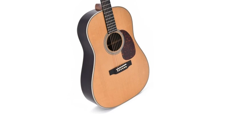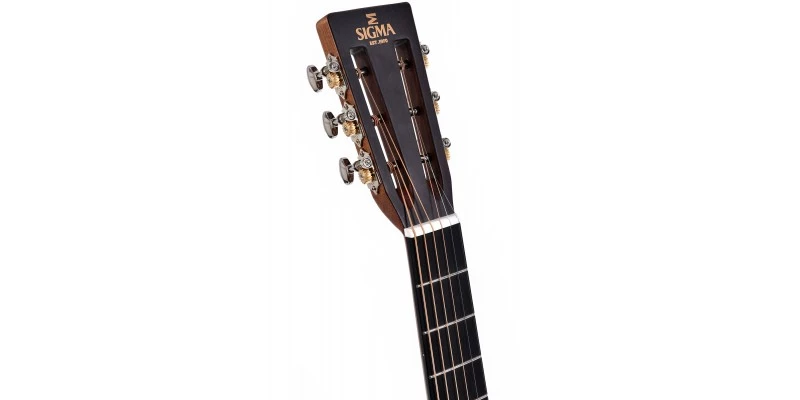 The Sigma SDR-28S Custom Shop is an all-solid dreadnought acoustic guitar with solid Sitka Spruce top and solid Indian Rosewood back and sides. The 12th fret neck to body join gives this guitar increased tonal nuance, while the dreadnought body ensures it still has plenty of projection. Aesthetically, the slotted headstock gives it a vintage look, further enhanced by the aged finish and open-gear Grover tuners.