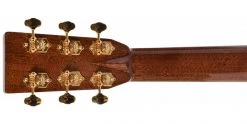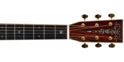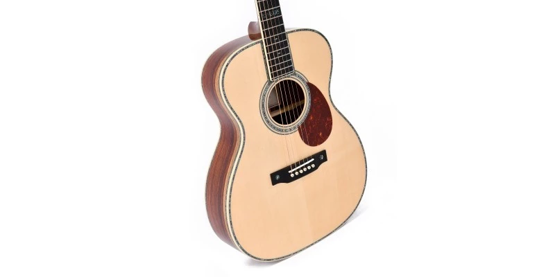 These woods are combined here in a traditional OM body – the body style of choice for fingerstyle players who prioritise balance and articulation. Not quite as loud as a dreadnought, the OM makes up for this in refinement, responding to the skilled guitarist’s most subtle inputs. The pinched waste and shallower body also make it very comfortable to play seated.