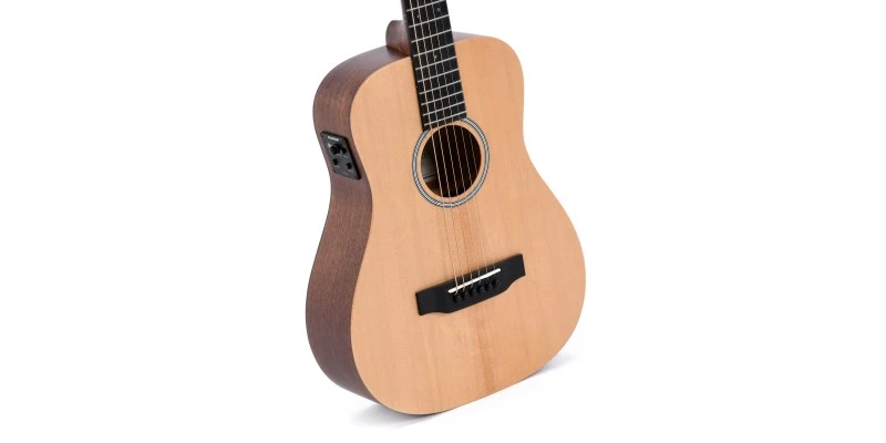 The Sigma TM-12E+ is a compact travel electro acoustic guitar with Fishman electronics. It’s the perfect size for travelling yet still large enough to sound and feel great to play. Top class features such as a solid Sitka Spruce top with bone nut and saddle. The Fishman Isys T means this guitar is great for playing live or recording and the built in tuner is a handy addition. The TM-12E Comes supplied in its own padded gig bag.