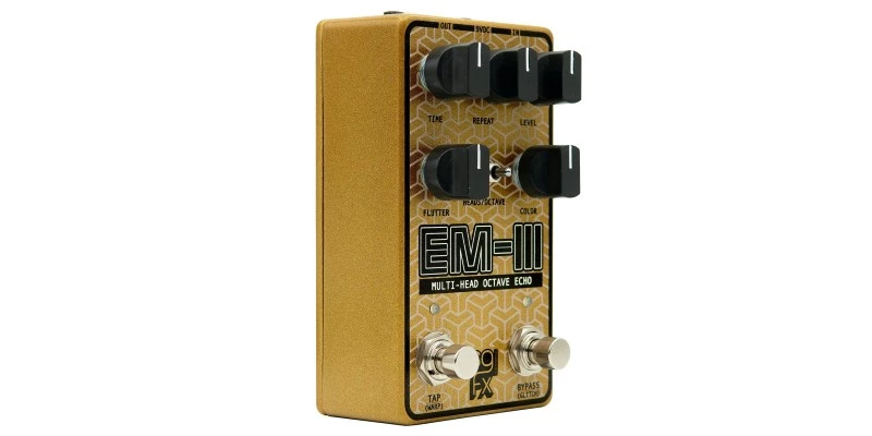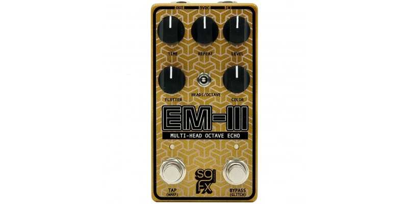 The SolidGoldFX EM-III Multi-Head Octave Echo is the smallest, most powerful and most versatile SolidGoldFX delay pedal available. Features include Multi-Head Tape Delays, including Octave and Modulation, 70 to 1000 milliseconds delay time, a warp feature for instant self-oscillation Wall-of-Sound Swells and a glitch feature which replicates snapping tape sounds.
