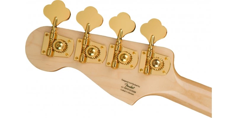 The Squier 40th Anniversary Precision Bass®, Gold Edition is a stylish model adorned with an eye-catching collection of upscale features for the discerning Squier fanatic. Featuring striking gold-plated hardware, a gold anodized aluminum pickguard, a bound Indian laurel fingerboard with pearloid block inlays, an engraved anniversary neck plate and gloss finish throughout, this P Bass® is poised and ready for the spotlight. Player-friendly refinements of this commemorative model include a slim and comfortable “C”-shaped neck profile for an easy playing feel, vintage-style tuning machines and 4-saddle bridge with barrel saddles for authentic performance and style, and a Fender-Designed split single-coil pickup with alnico 5 magnets for familiar P Bass tone.