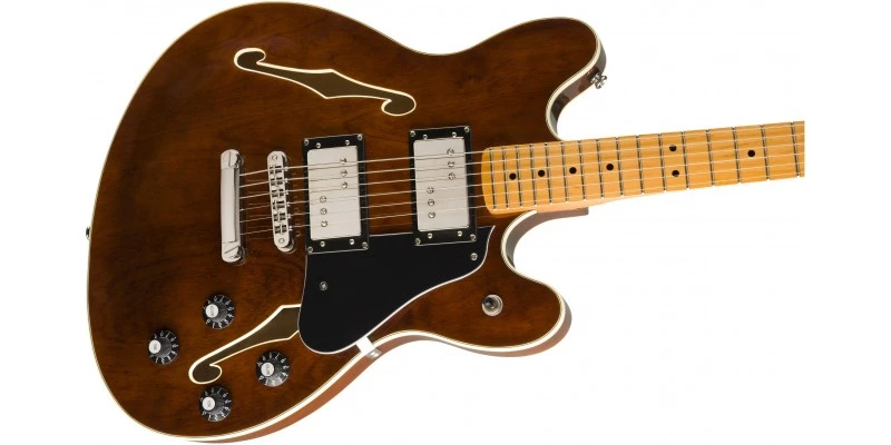 Finished in a stunning Walnut gloss with unique painted headstock contour, the Squier Classic Vibe Starcaster evokes the vibrant musical era which gave rise to the original Starcaster. This time-proven model is fitted with twin Fender® Wide Range Humbucking pickups which perfectly compliment the full tone produced by the semi-hollow maple body. The Classic Vibe Starcaster is truly a feast for the eyes and ears.