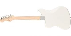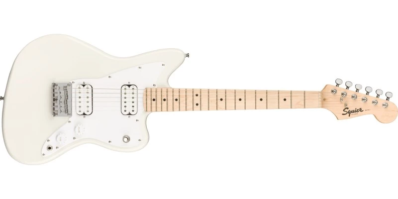 The Squier Mini Jazzmaster in Olympic White is a 3/4-size version (22.75″ scale length) of the full-size Jazzmaster. It makes an ideal travel guitar for players of all ages and a great first guitar for young beginners. It features two humbucking pickups and three-way switching for a wide variety of tonal options. A six-saddle hard-tail bridge ensures great intonation and tuning stability. Available now from Merchant City Music, it will receive a full professional set up before dispatch. Fast UK and worldwide delivery.