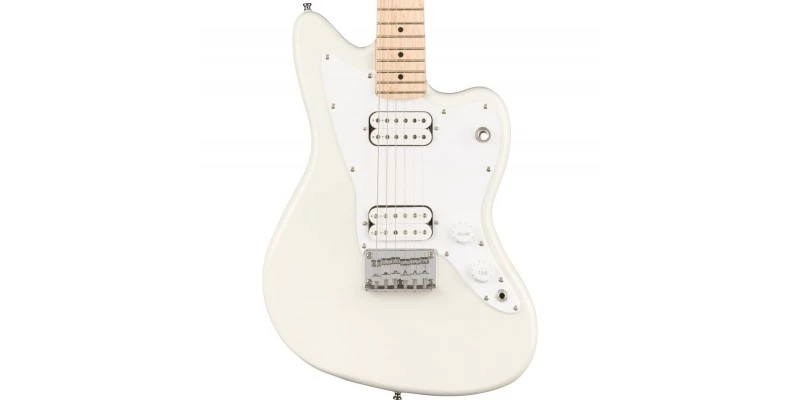The Squier Mini Jazzmaster® HH is the perfect companion for players seeking a reduced-size instrument with classic styling and familiar Fender® tone. Highlights include a thin and lightweight body, an easy-to-play “C”-shaped neck profile, dual Squier humbucking pickups with 3-way switching for sonic variety, and a hardtail bridge for solid tuning stability.