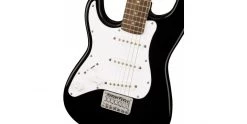 The Squier Mini Stratocaster Left-Handed in Black is the 3/4-size version (22.75″ scale length) of the Bullet Strat. It makes an ideal travel guitar for players of all ages and a great first guitar for young beginners. Featuring three single-coil pickups and five-way switching. The Left Handed Squier Mini Black Kids Guitar is the ideal place to start out. Available to buy online and in our Glasgow shop, it will receive a full professional set up before dispatch. Fast UK and worldwide delivery .